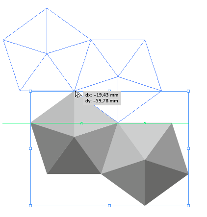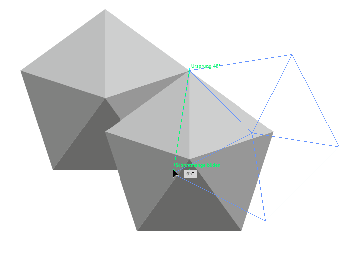 Wählen Sie beide Fünfecke mit dem Auswahl-Werkzeug an ihrem unteren Treffpunkt aus, drücken Sie Alt und verschieben/kopieren Sie die Objekte zum oberen Punkt des linken Fünfecks.