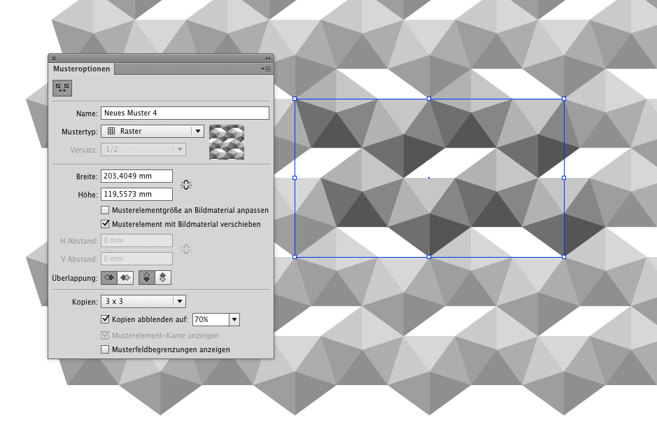Weil Illustrators Musterbearbeitungsmodus nicht den passenden Versatz anbietet, müssen wir vorher noch selbst Kopien erstellen.