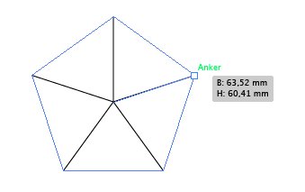 An seinem obersten Punkt ziehen Sie das Fünfeck auf seinen rechten Punkt und halten dabei Alt gedrückt.