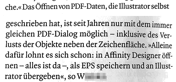 Und eine weitere Büchse der Pandora habe ich nicht einmal angedeutet: das Öffnen von PDF in Illustrator. Ich empfehle dazu diesen Beitrag (Englisch).