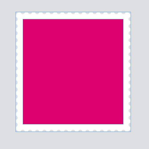 Unter „Typ“ in der Konturen-Palette kann man diesen Stil als Kontur für das Briefmarken-Rechteck auswählen. Als Farbe die Farbe des Hintergrunds zuweisen. Als Füllung für das Rechteck in diesem Fall weiß.