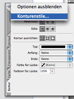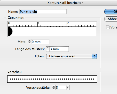 Zuerst benötigen wir einen anderen Punktestil, bei dem die Punkte näher zusammenrücken. In der Konturen-Palette „Konturenstile“ aufrufen.