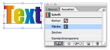 Alternativ können Sie auch mit Hilfe der Aussehen-Palette der Schrift einen neue Fläche hinzufügen und diese Fläche mit dem Verlauf füllen.