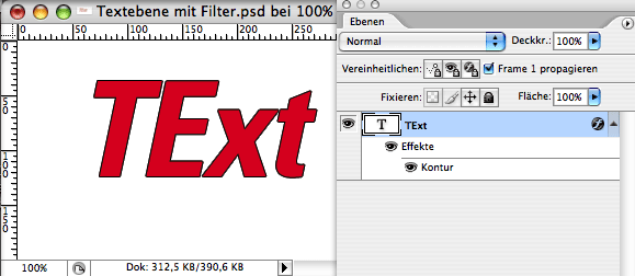 Um Schriftelemente mehrfach mit Outlines zu versehen und gleichzeitig editierbar zu erhalten, verwenden Sie Aussehen-Eigenschaften.