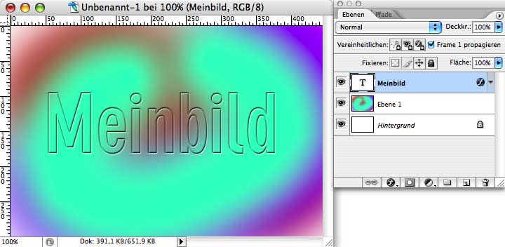 Sie benötigen dafür in diesem Fall eine Textebene über Ihrem Bild. Die Textfarbe ist ein mittleres Grau - hier 132/132/132