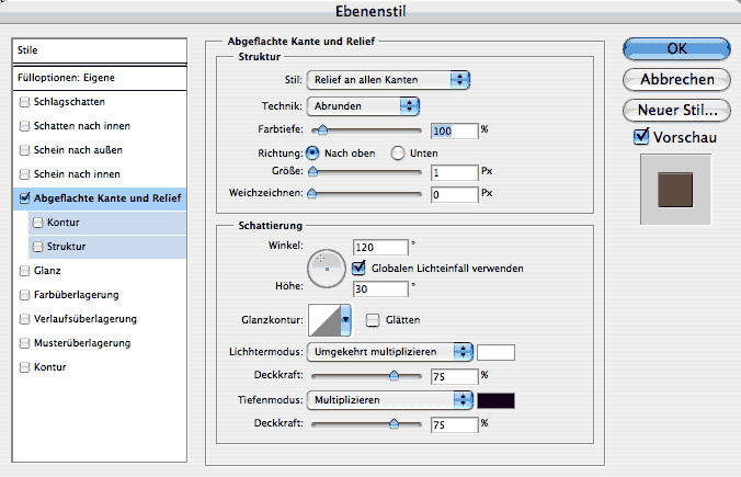 Für die Textebene stellen Sie Ebeneneffekte ein: