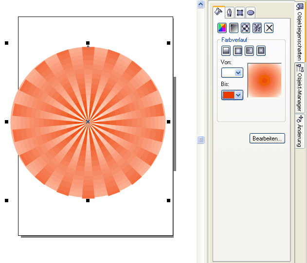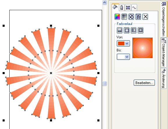 Anschließend weisen Sie eine radiale Füllung zu und stellen die Kontur auf „Keine“.