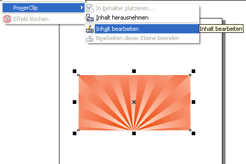 Zeichnen Sie dann ein Rechteck. Wählen Sie die zuvor erstellte Gruppe aus und rufen Effekte > PowerClip > In Behälter platzieren auf. Mit dem darauf erscheinenden Cursor klicken Sie auf das Rechteck.