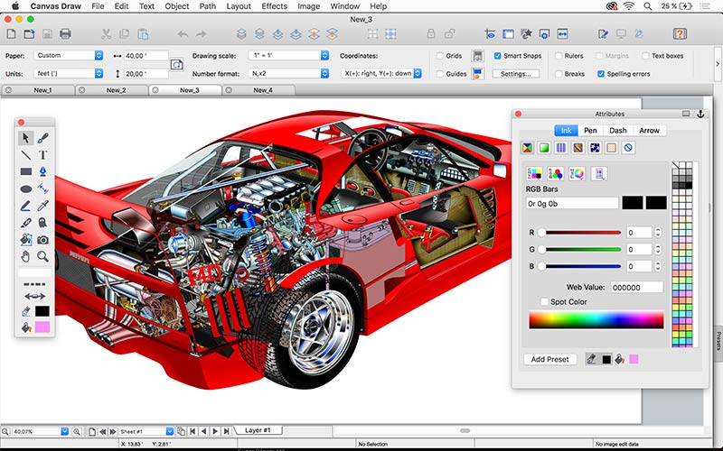 Canvas existiert wie fast alle anderen getesteten Vektorprogramme seit Urzeiten. Es kommt allerdings eher aus der CAD-Ecke und besitzt für diesen Bereich einige interessante Funktionen.