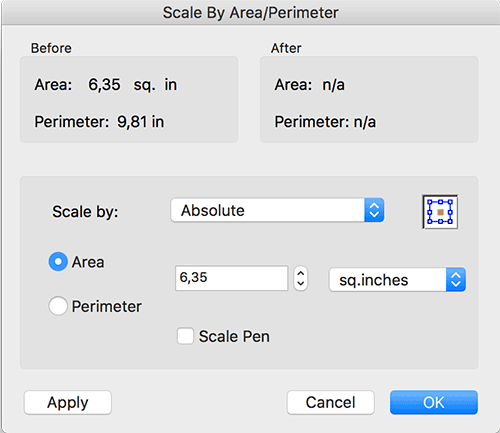 Interessant sind die Skalierungsoptionen, mit den man auf einen bestimmten Umriss oder einen Flächeninhalt skalieren kann.